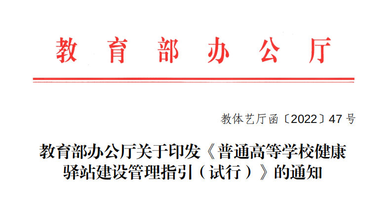 近日,教育部辦公廳印發了關于《普通高等學校健康驛站建設管理指引(試行)》的通知(以下簡稱《指引》),以此進一步引導規范高等學校健康驛站建設。