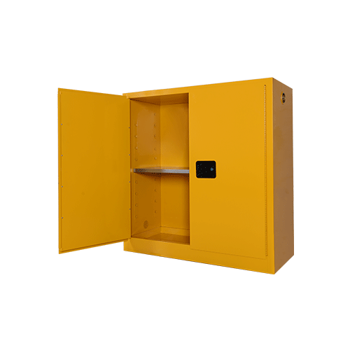 安全存儲柜系類有黃(黃色指示易燃物品)、紅(紅色指示可燃物品)、藍(藍色指示弱腐蝕性物品)三種顏色,三種顏色的尺寸相同,儲放危險品類型不同。