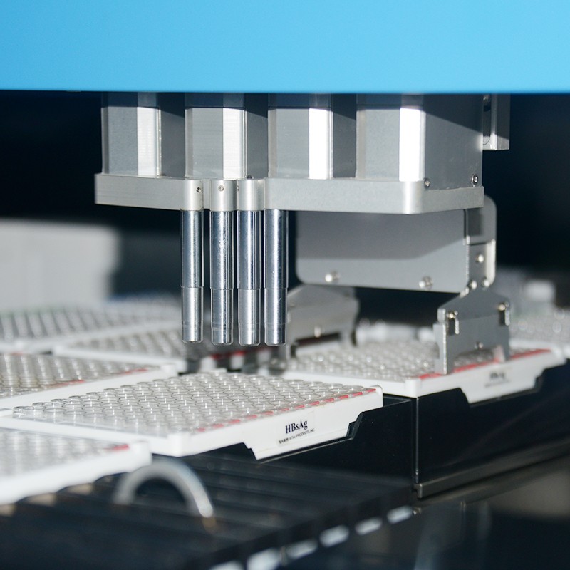 十四、洗板機(jī):2臺(tái)獨(dú)立洗板機(jī),洗板頭16通道,洗板頭采用掛式安裝,可以不借助任何工具靈活卸載,方便處理堵孔等問題;程序控制洗板排數(shù),清洗次數(shù)0-9可調(diào),清洗殘留液量≤1ul/孔。