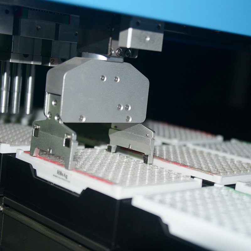 十一、機(jī)械臂:一個(gè)智能機(jī)械臂,用于標(biāo)本和試劑分配、抓板;配備全智能壓力感應(yīng)式機(jī)械抓手,壓力感應(yīng)系統(tǒng)實(shí)時(shí)監(jiān)測(cè)抓板狀態(tài),防止掉板。