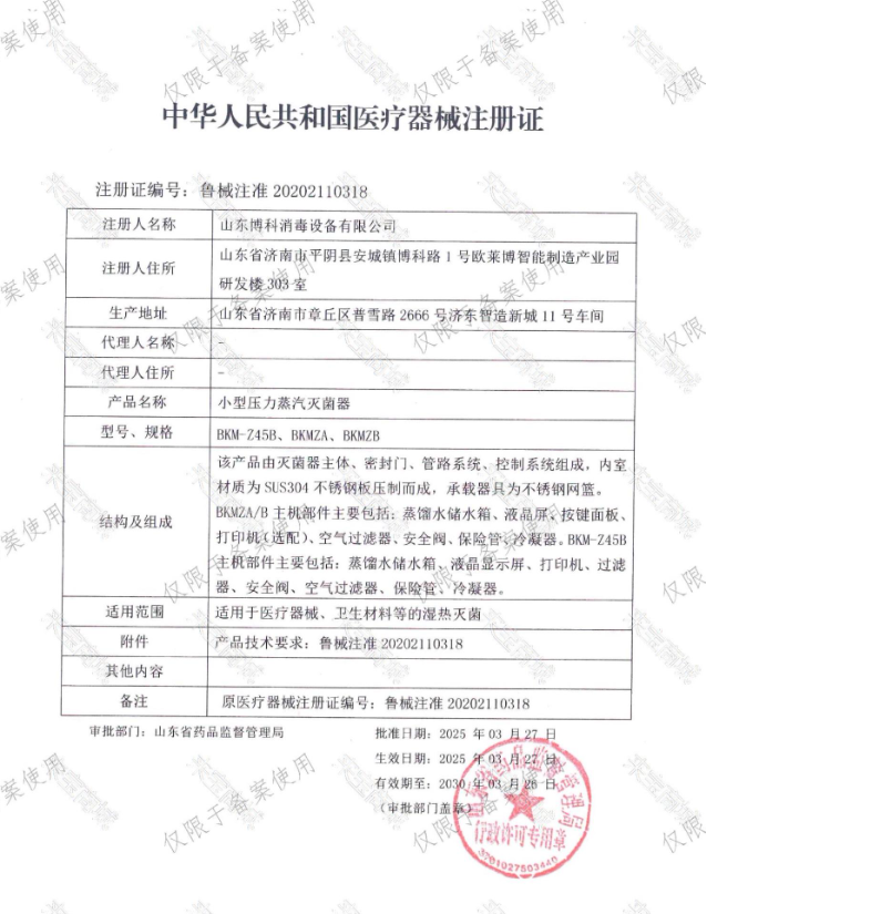 批準文號:魯械注準20202110318