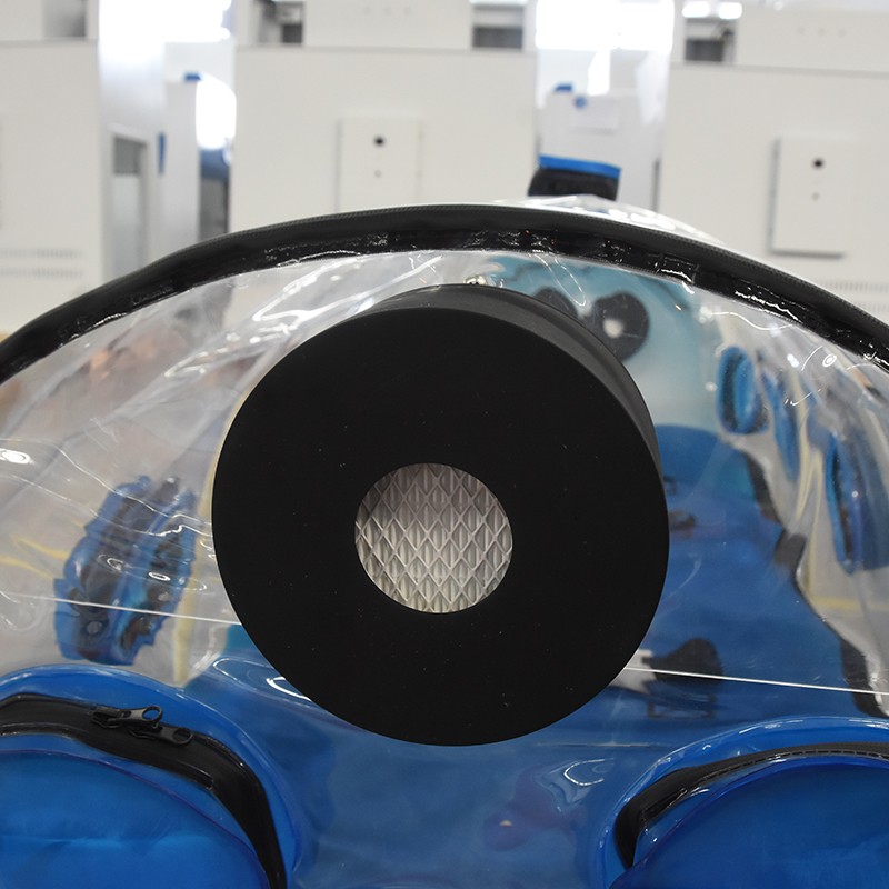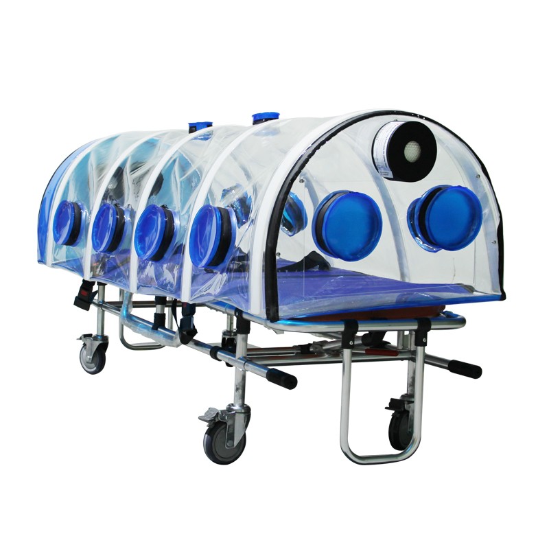 由支撐桿支撐為拱形,2個輸氧口,為病員輸液和輸氧氣;附10個操作口,套上手套便于對里邊病人進行護理維護。