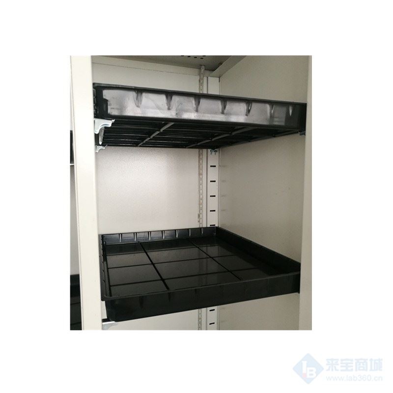 4、抗酸堿盛漏液抽屜:聚丙烯PP內膽,耐腐蝕,防止試劑瓶打碎泄漏的液體外溢。